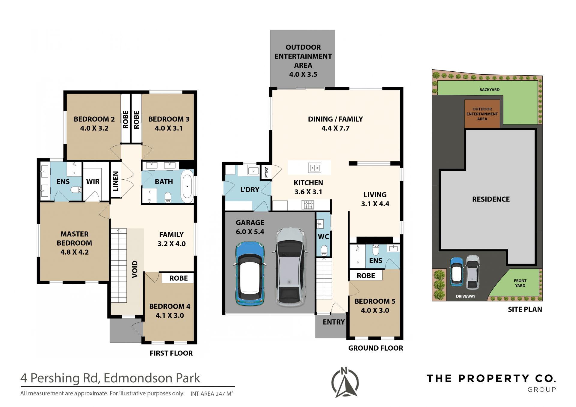 This grand residence offers an oversized master suite featuring spacious walk-in robe and luxurious ensuite, plus four additional spacious bedrooms all with built in robes including guest bedroom on the entry level with ensuite.