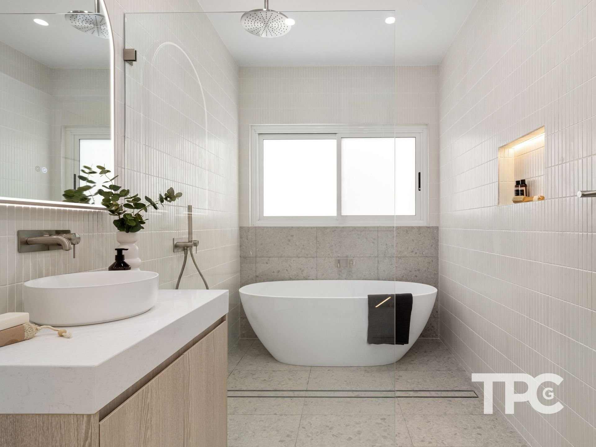 - Designer bathrooms feature Italian Terrazzo tiles and floor to ceiling Kit Kat Mosaic Tiles