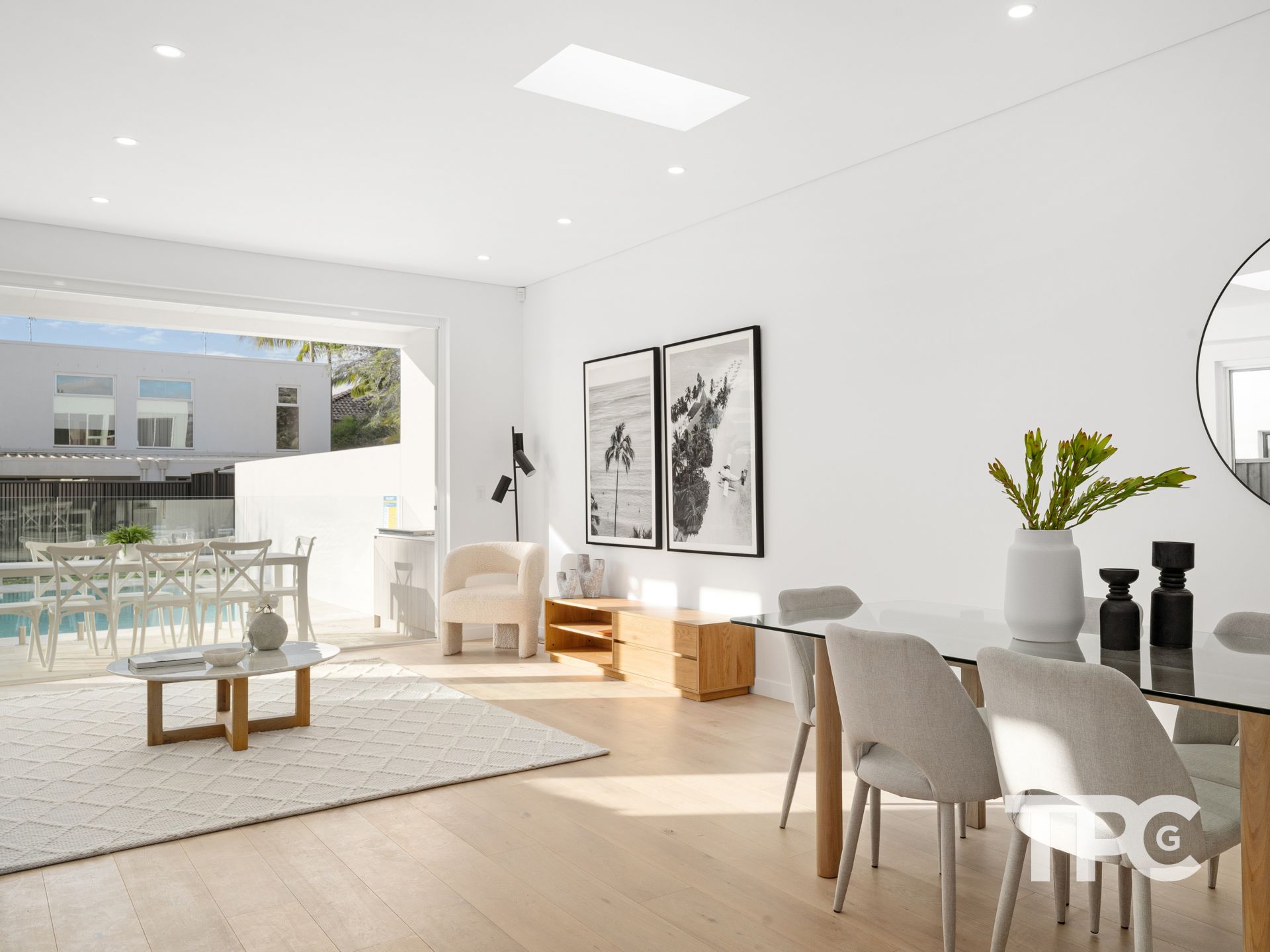 Expertly designed, this home radiates modern elegance, bathed in natural light throughout its expansive layout. Its spacious interiors feature luxurious finishes and seamlessly flow out to a secluded entertainers' patio and inviting pool.