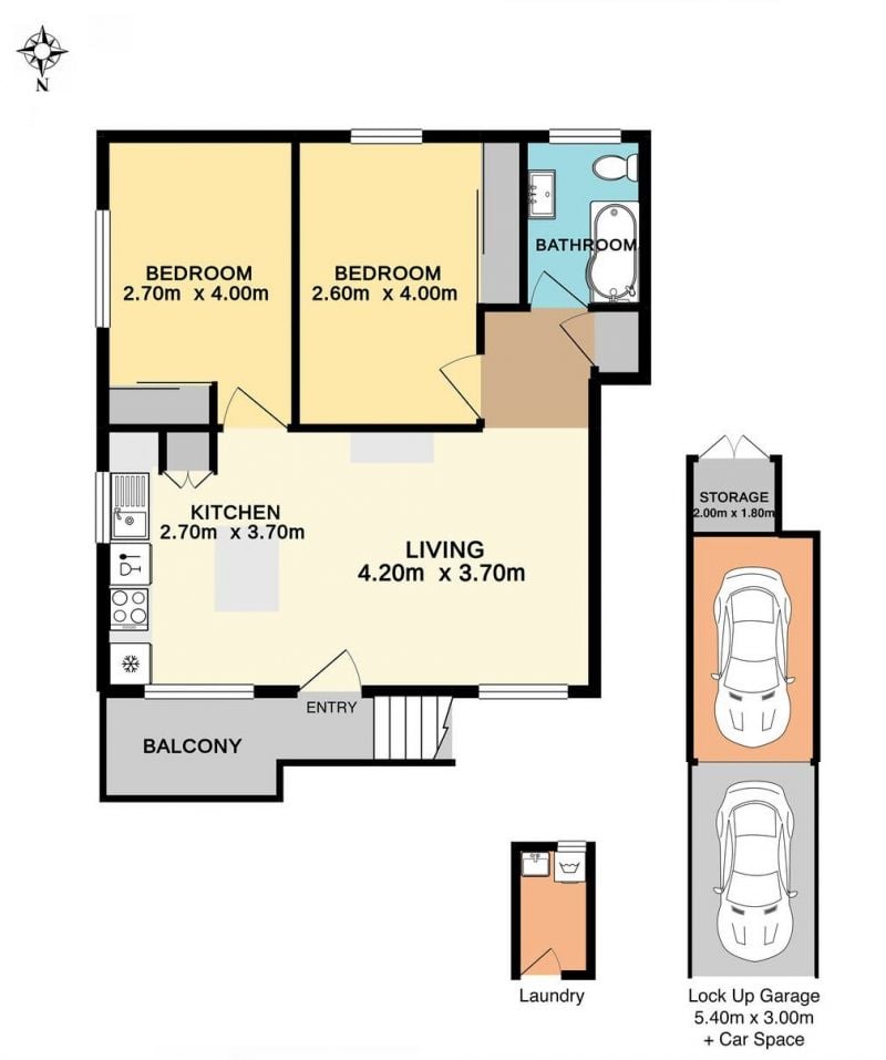 - Single lock up garage and car space, private laundry room plus separate storage room