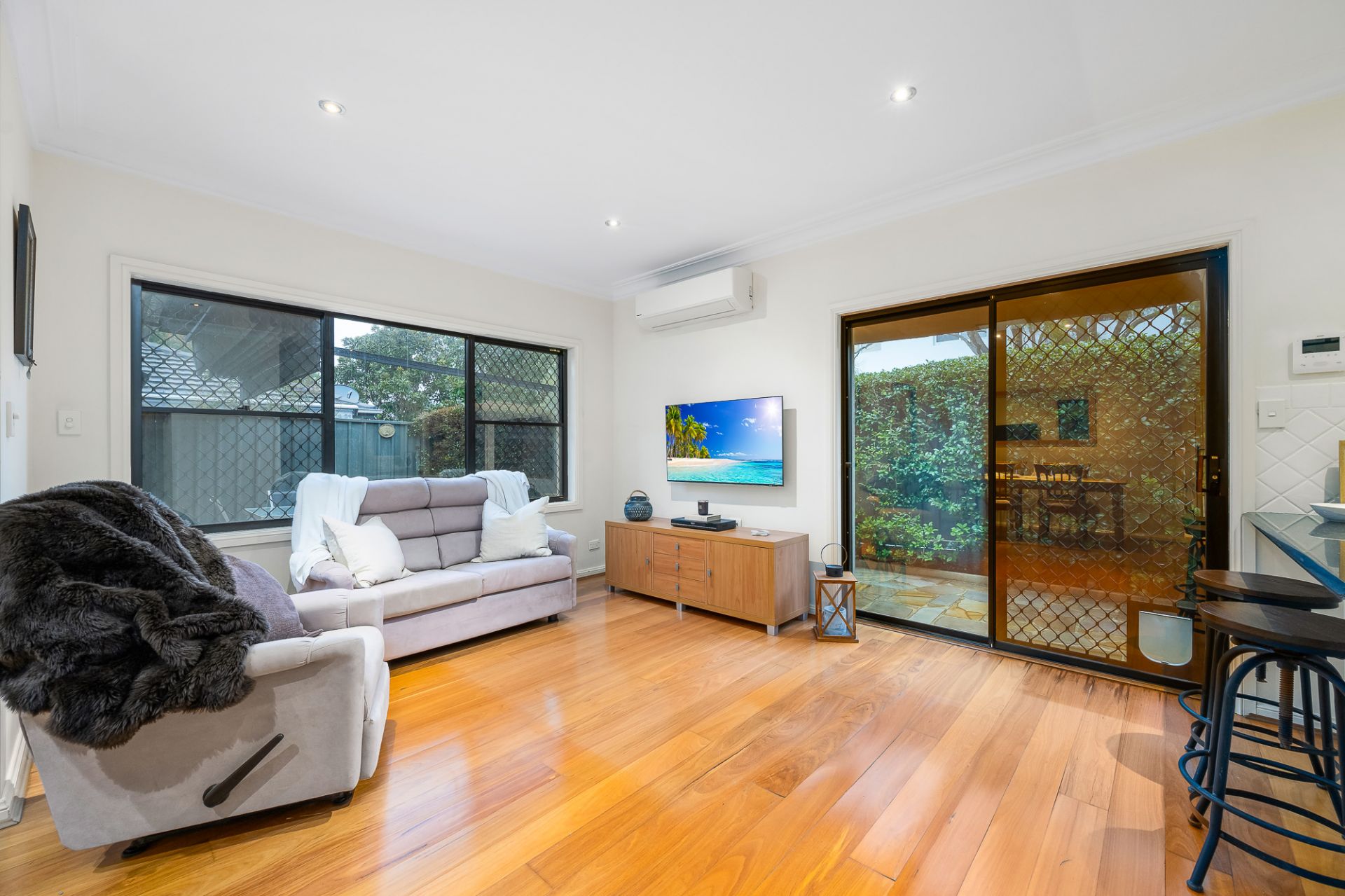 - Reverse cycle air conditioner in living area