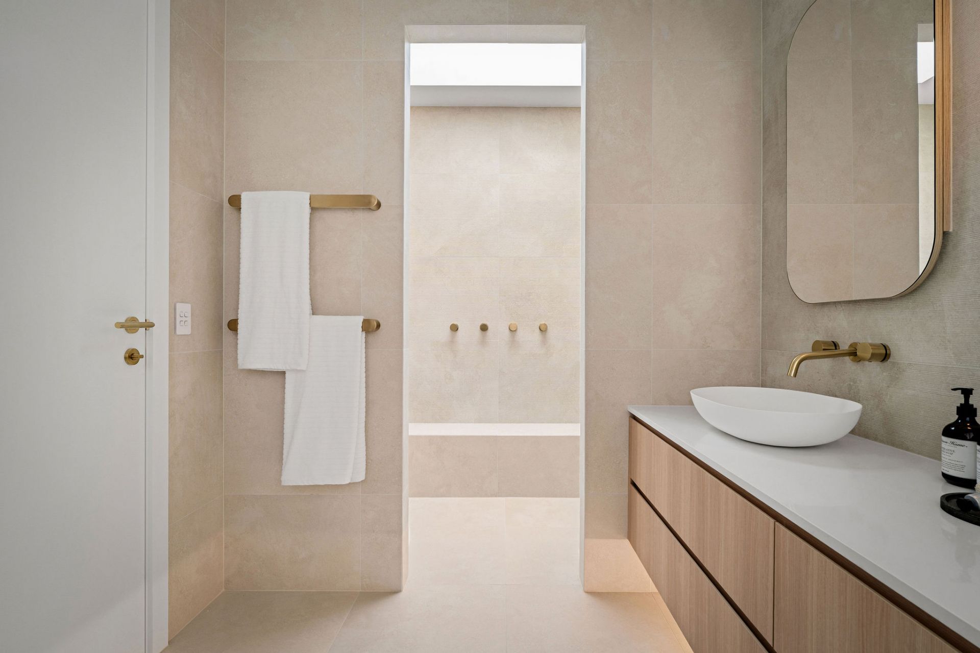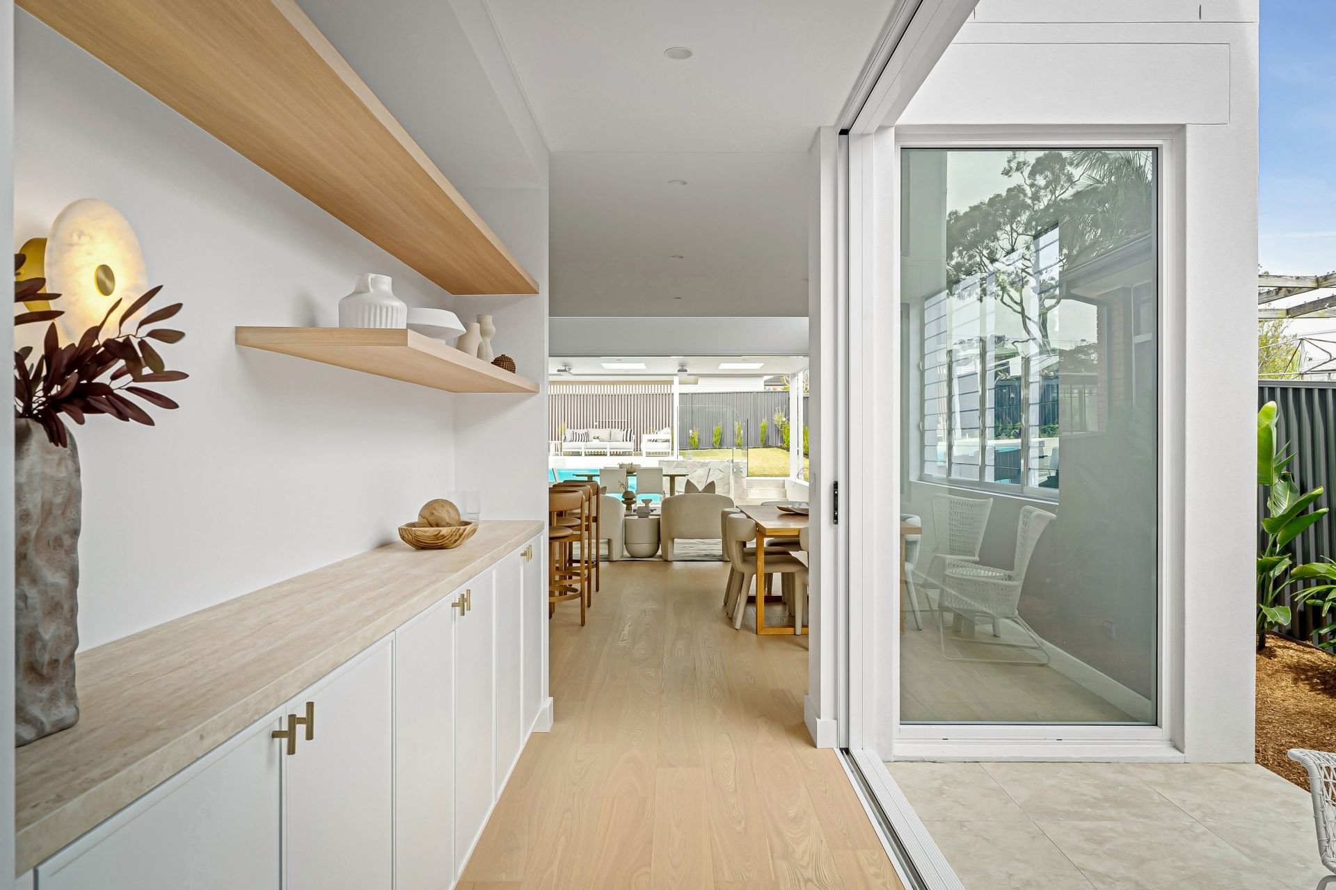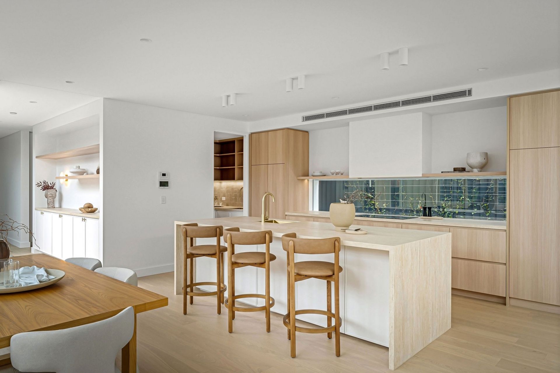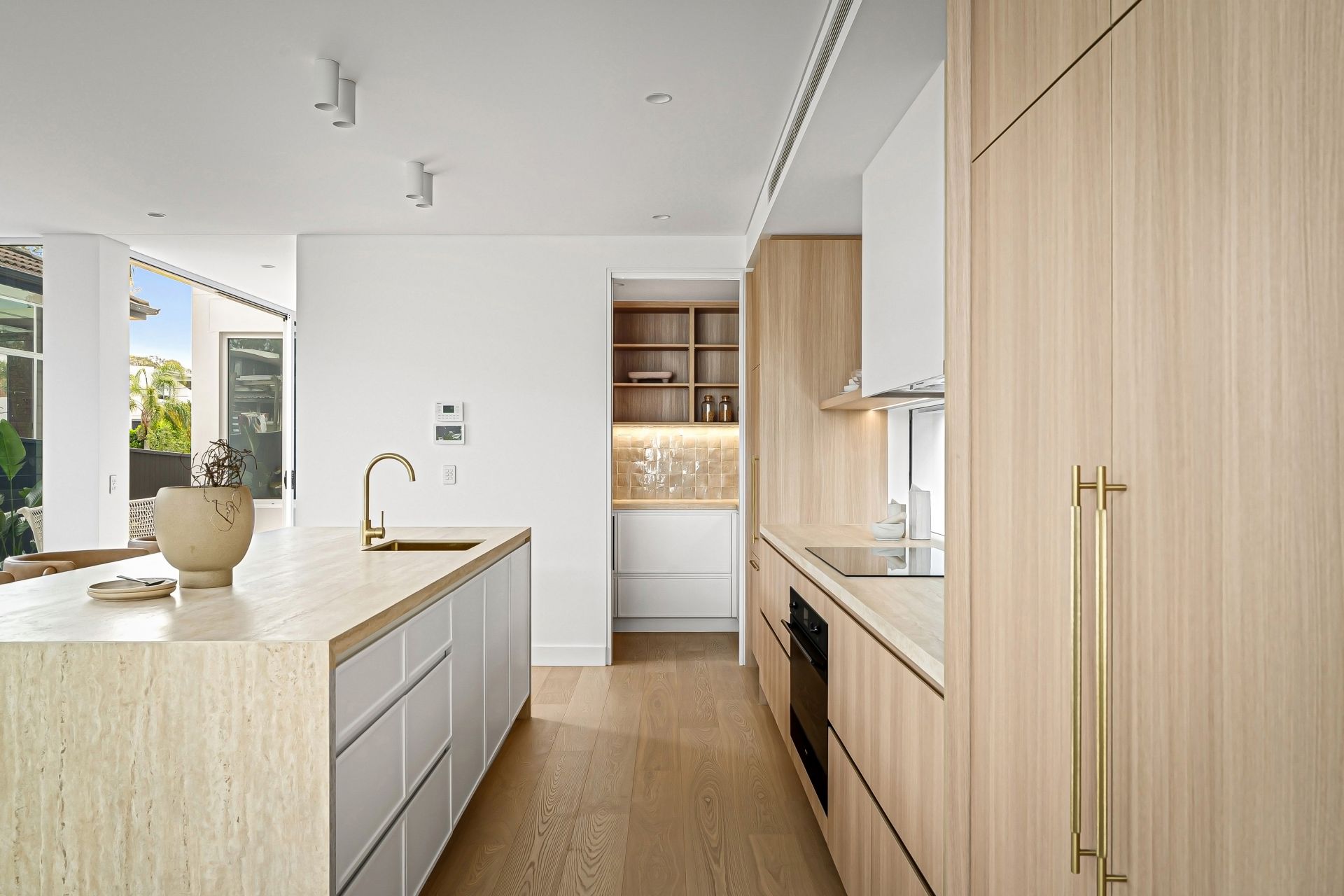 - Gourmet kitchen with integrated Smeg appliances, Talostone sintered travertine benchtops, ABI brushed brass fittings, and a spacious butler's pantry crafted for culinary excellence.