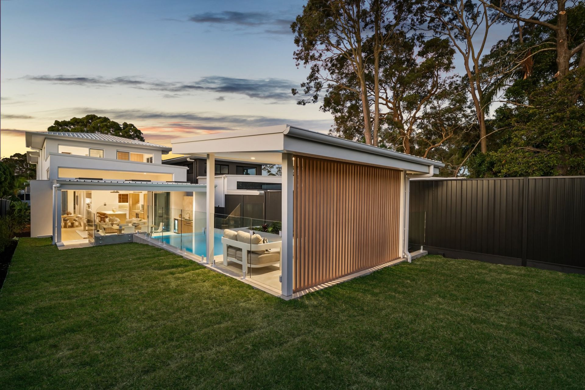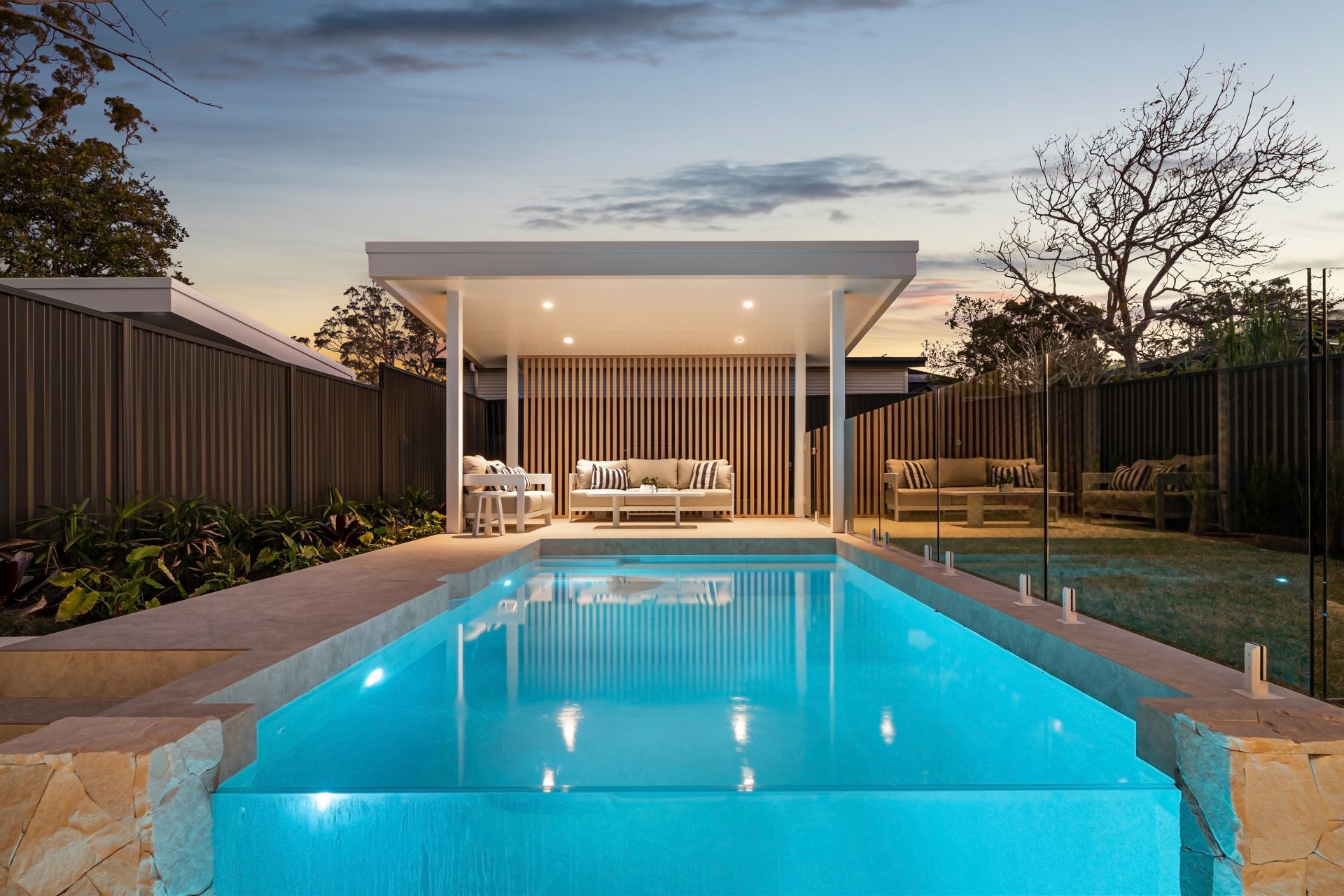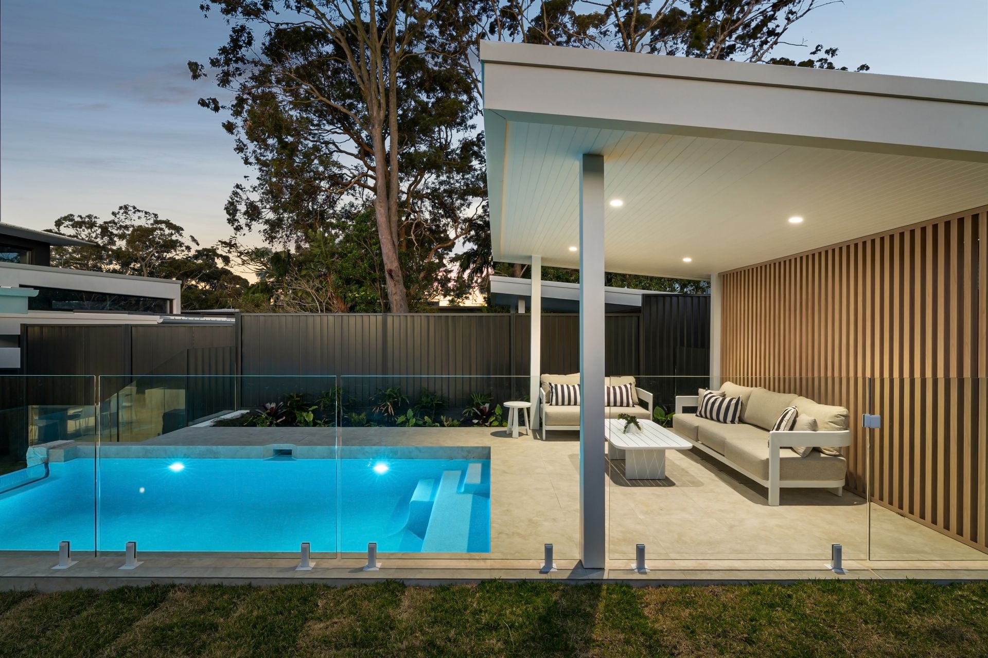 - A private backyard oasis featuring a spill-over glass edge pool, immaculate landscaping, and verdant lawns, creating the perfect setting for both tranquil relaxation and sophisticated entertaining.
