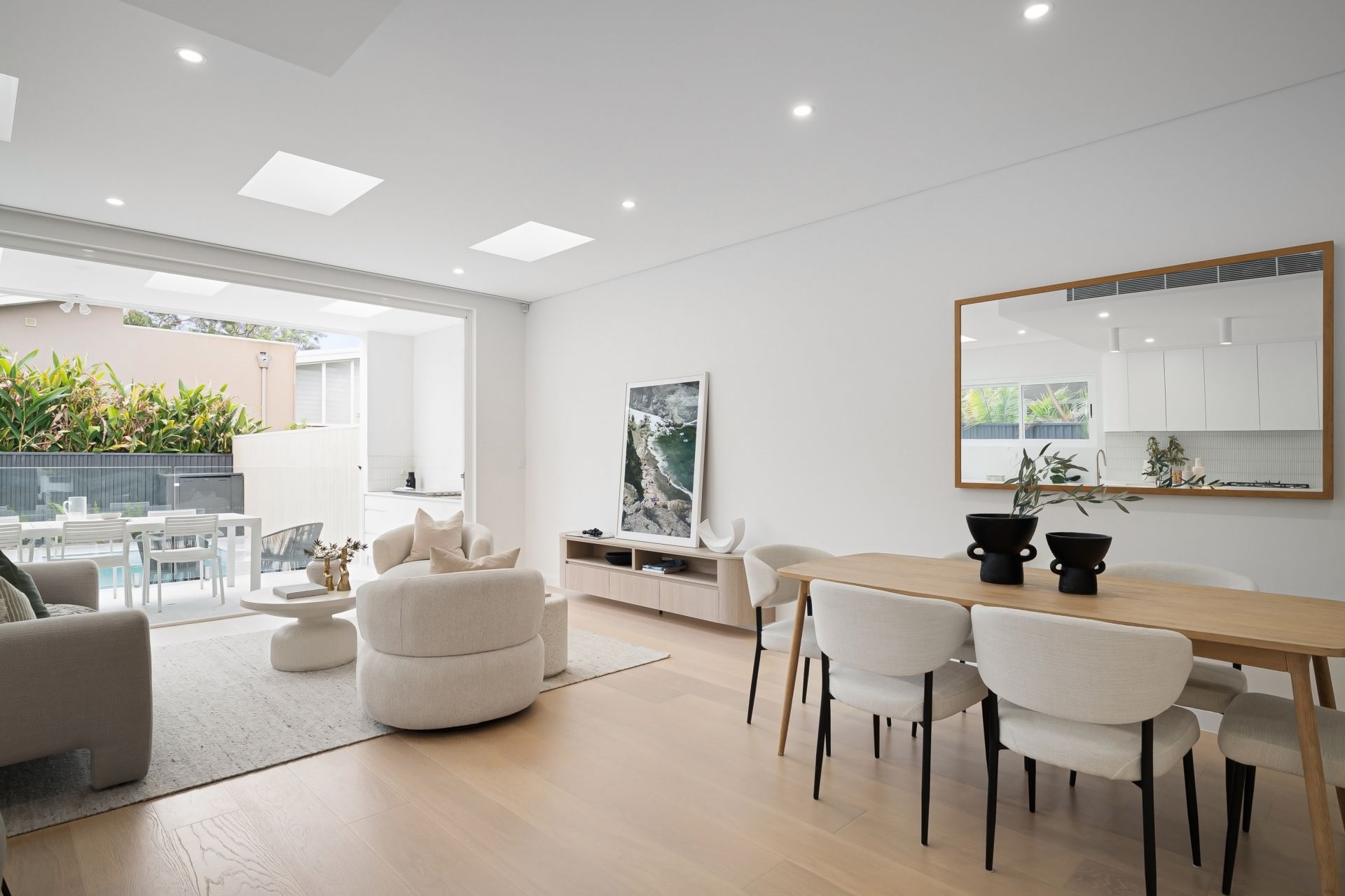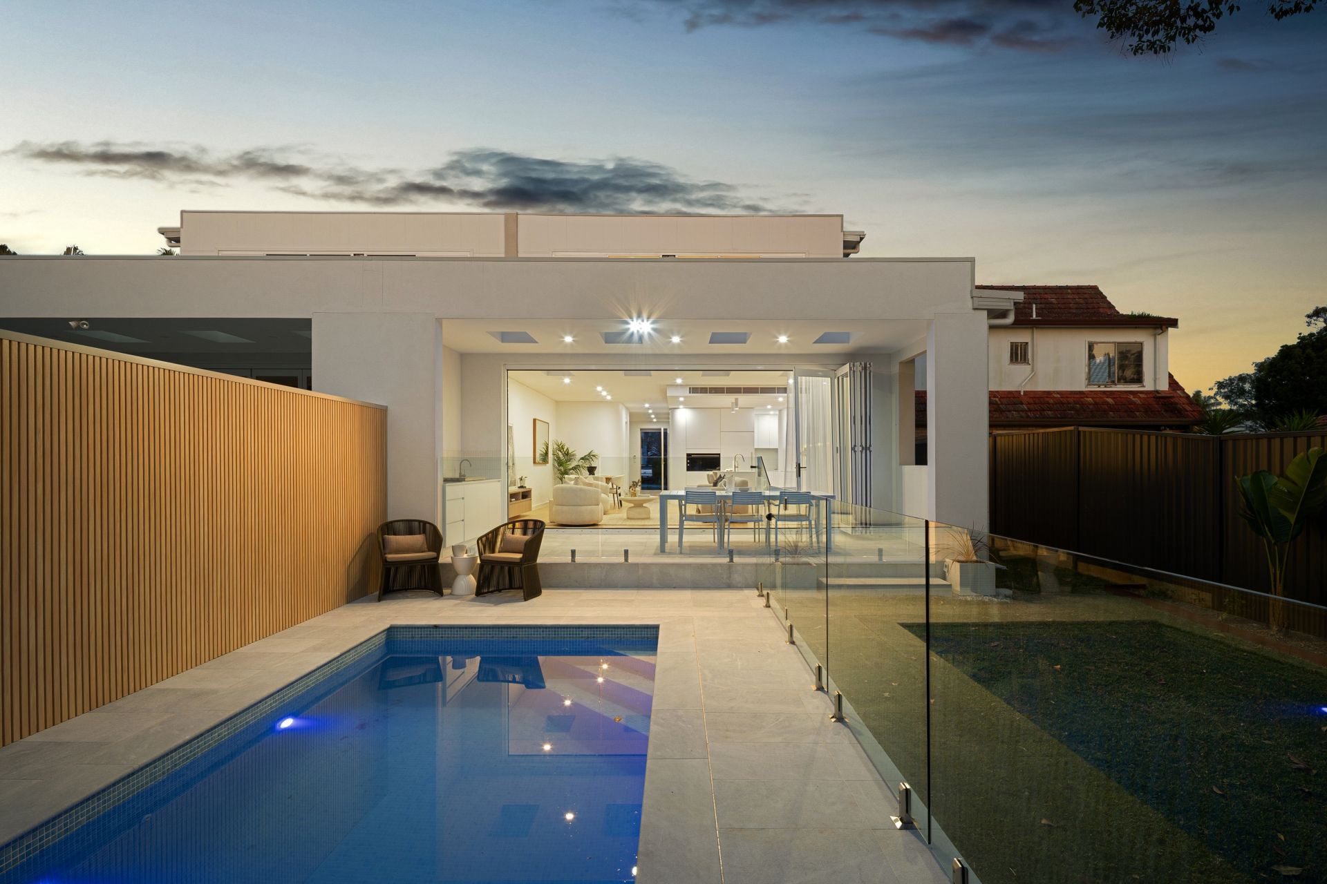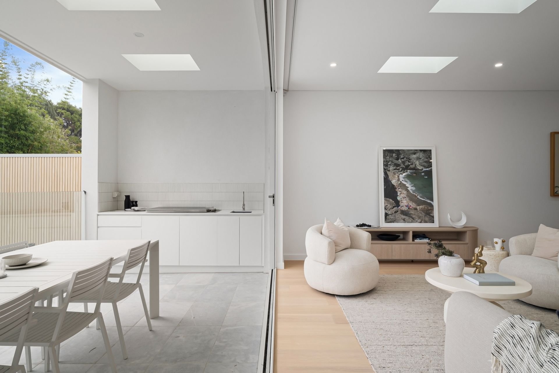 - Bi-fold doors creating seamless indoor–outdoor flow