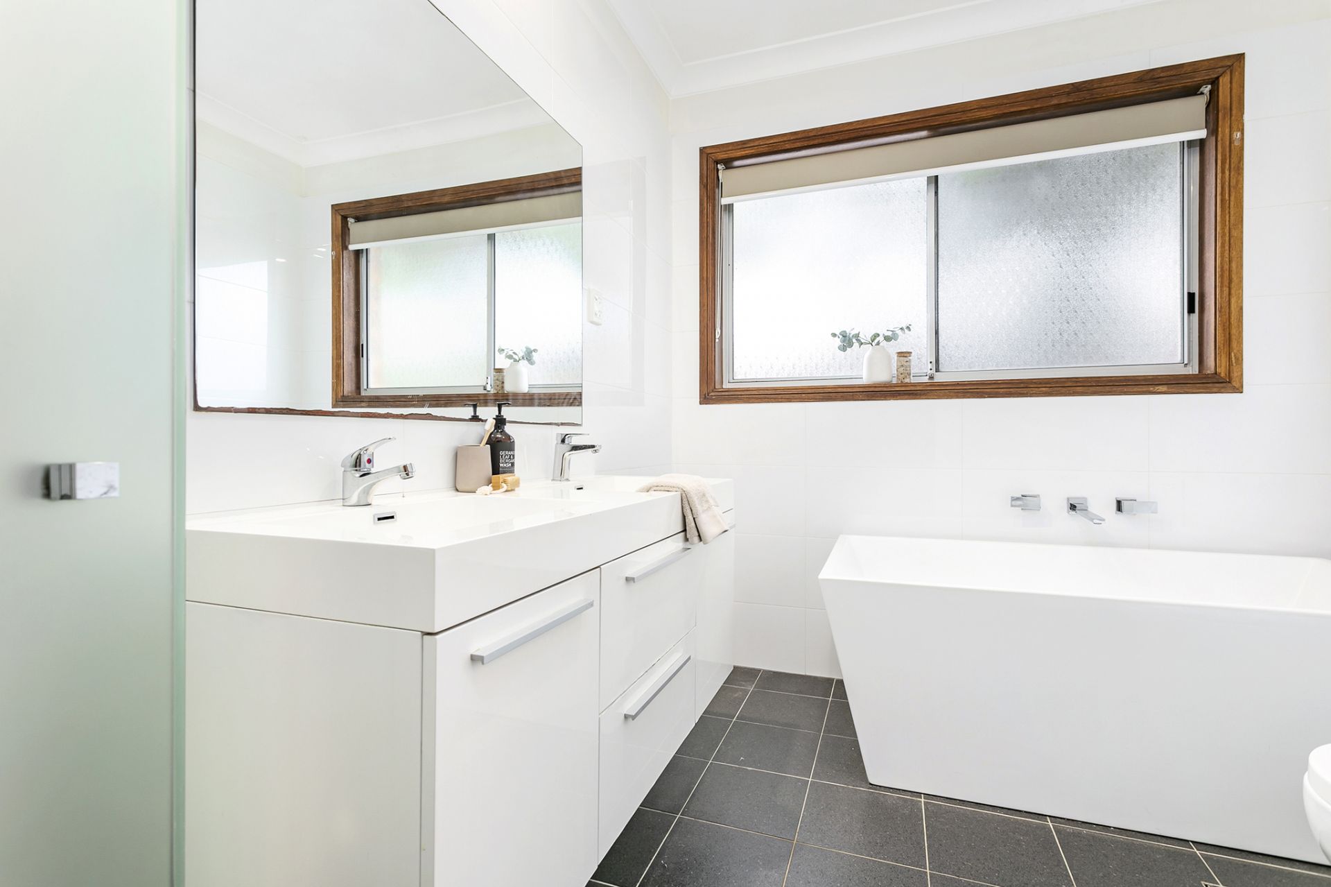 - Stylishly updated bathroom, separate bathtub plus internal laundry