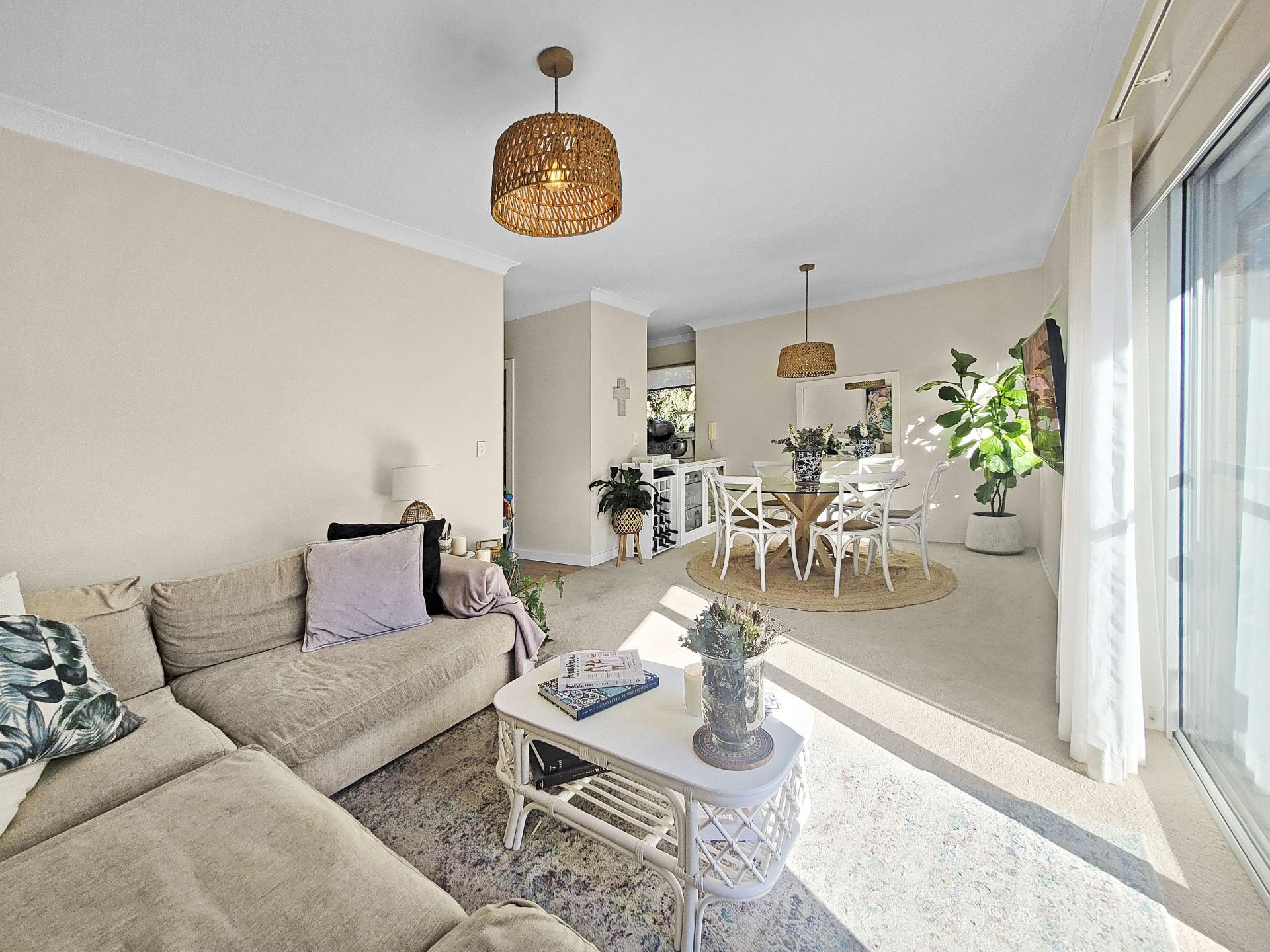 * Large open plan lounge and dining area with access to balcony.