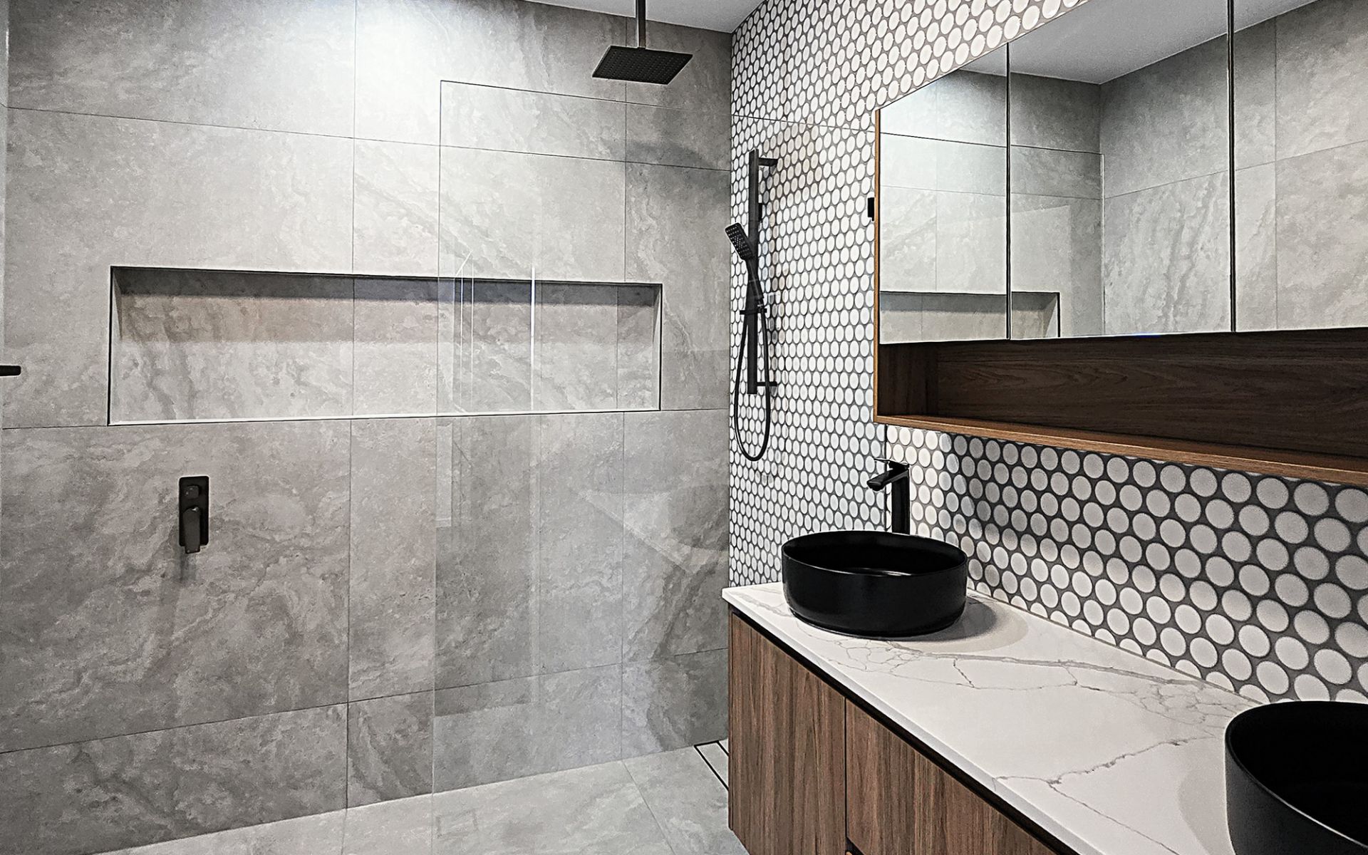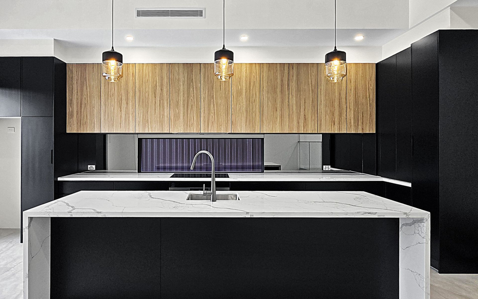 * Ultra modern kitchen with stone benchtops, modern and new appliances with dishwasher